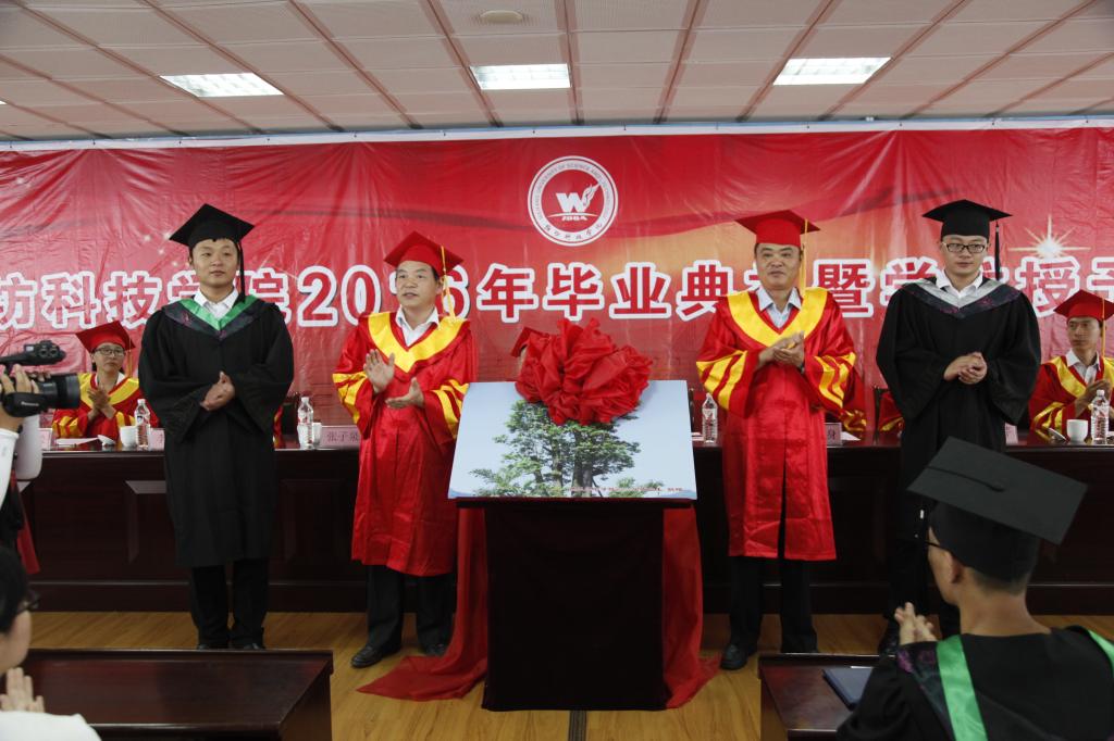 为了让每位毕业生更加真切地感受到毕业的光荣与之后的责任,29名同学获得省市优秀毕业生荣誉称号,5名同学论文被评为优秀毕业论文。91名本科毕业生、97名专科毕业生从校领导手中接过毕业证书、学位证书,体味流苏摆过眉间的幸福,感受师长的嘱咐,他们留给母校富有深情的纪念物,也如他们的难舍与思念,成为潍科记忆……挥手从兹去,他们将步入一个新的人生阶段,向着更高更远处飞翔……