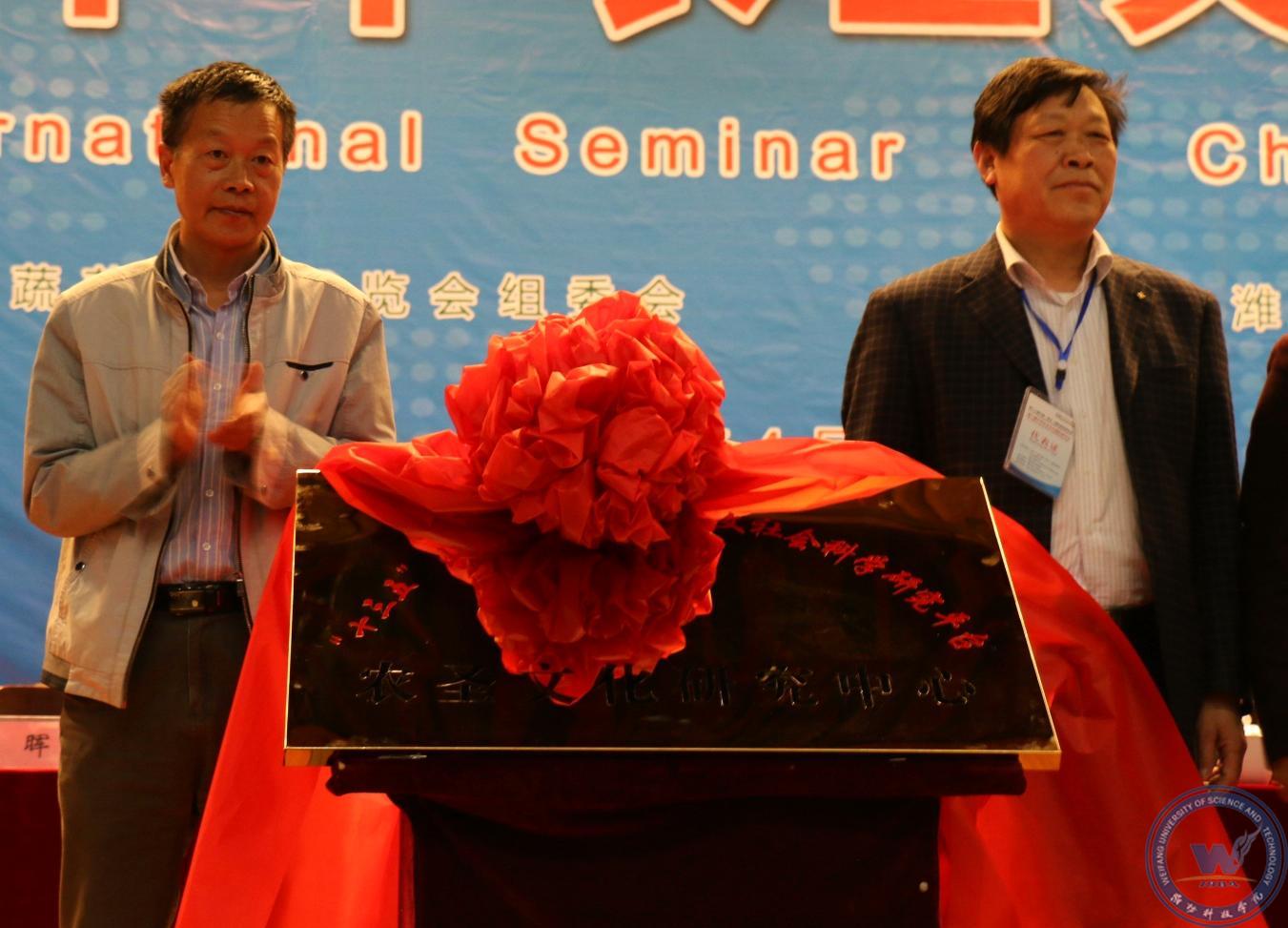 山东省教育厅科技处处长徐文广 , 寿光市人大常委会副主任、学院院长李昌武,寿光市人民政府副市长李建文,专家代表约旦绿色防控产品应用专家艾米尔( Amel )分别致辞。中国工程院院士、北京林业大学原校长、我院名誉院长尹伟伦,沈阳农业大学园艺学院副院长、博士生导师须晖为省部共建设施园艺教育部重点实验室寿光研究中心揭牌;山东省教育厅原副厅长宋承祥,寿光市政协党组副书记、总工会主席寇振彦为山东省高等学校重点实验室——设施园艺实验室揭牌;中国农业历史学会副秘书长、常务理事徐旺生 , 原齐鲁师范学院党委副书记牟树勋为山东省高等学校人文社会科学研究平台—农圣文化研究中心揭牌;山东省高工委党建联络员、山东省教育厅督导专员慈春增 , 农业部农村经济研究中心当代农史研究室主任、研究员王欧为山东省高等学校工程技术研发中心—山东半岛卤水资源高值化绿色化综合利用工程技术研发中心揭牌。我院党委副书记、副院长吴长军主持开幕式。