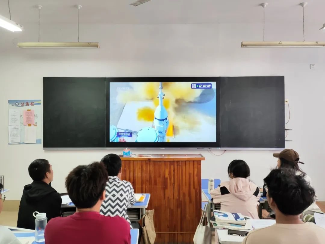 神舟十七号飞行乘组由航天员汤洪波、唐胜杰和江新林组成,他们带着党和人民的期盼和重托,去太空“出差”。屏幕前,同学们认真观看此次发射,高大的发射台,威武的运载火箭,铿锵有力的数字倒计时,火箭点火发射的瞬间,教室中哑然无声,火箭腾空而起,同学们屏息凝神,生怕错过每一个精彩画面。生怕错过每一个精彩画面。观影过程中,同学们感受到了我国航天事业的飞速发展,为祖国航天事业取得的伟大成就感到无比自豪。