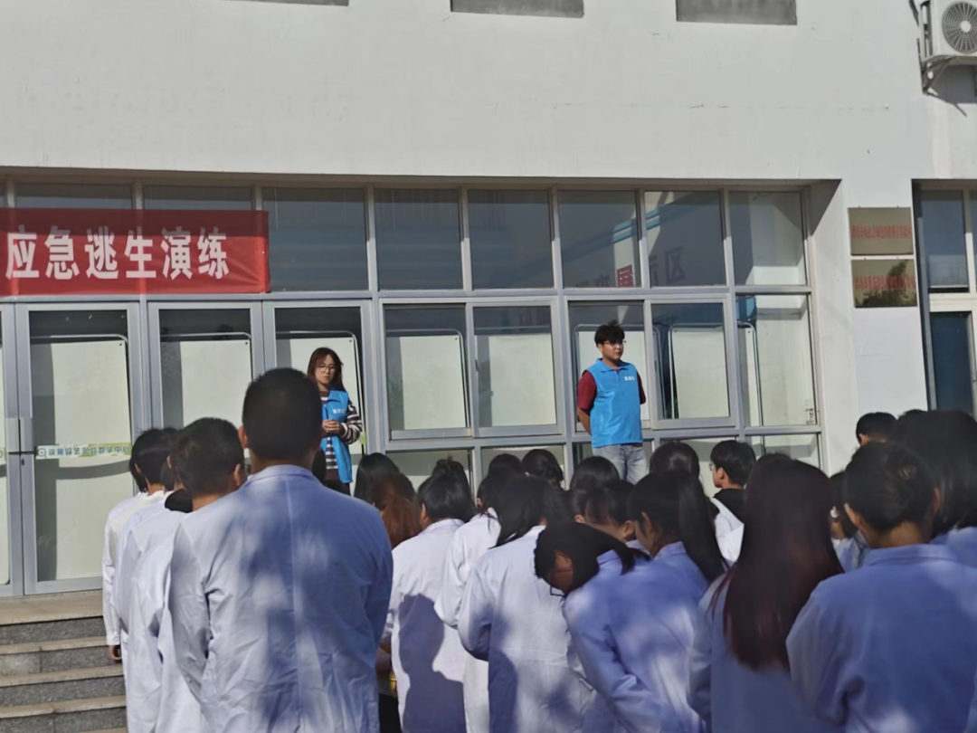 当同学们撤离到安全地点后,由就业实习部的成员为同学们讲解有关消防安全的“四懂四会”,以及对灭火器的正确使用。