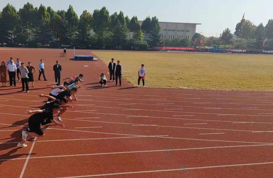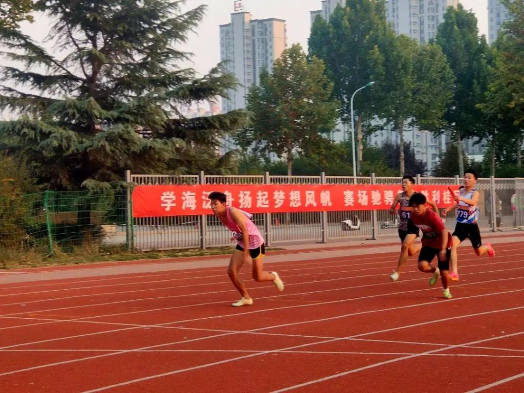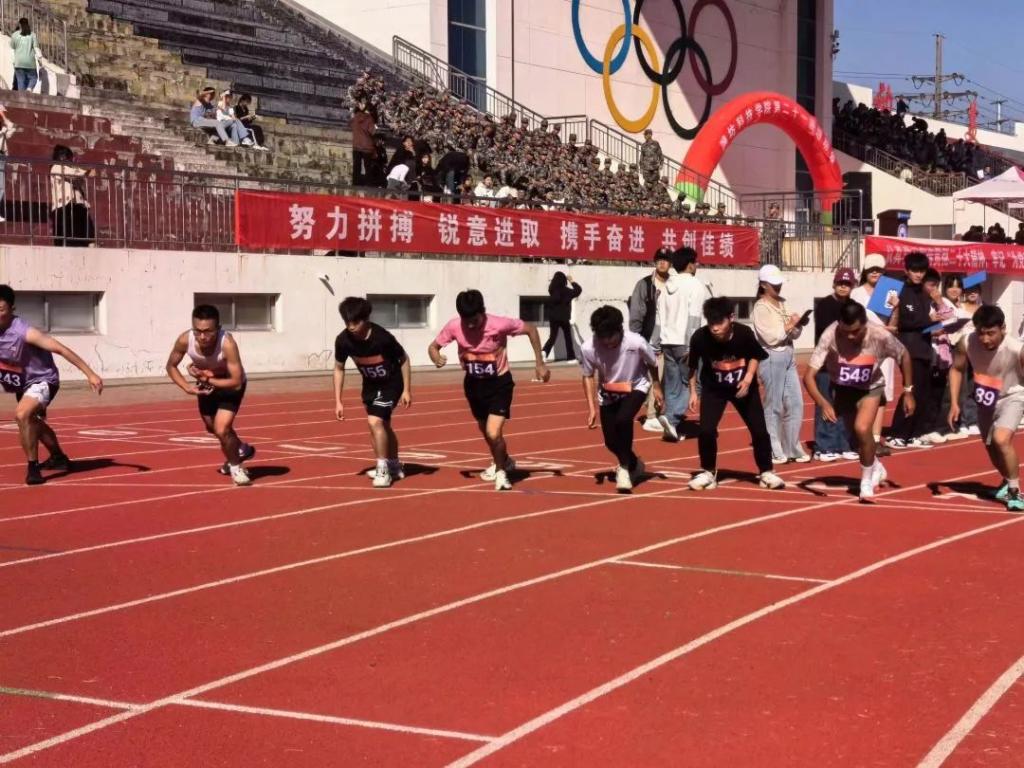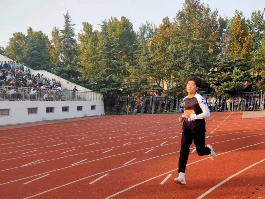 男子1500m决赛中阮然奇同学以5′10″50的优异成绩取得决赛第六名
