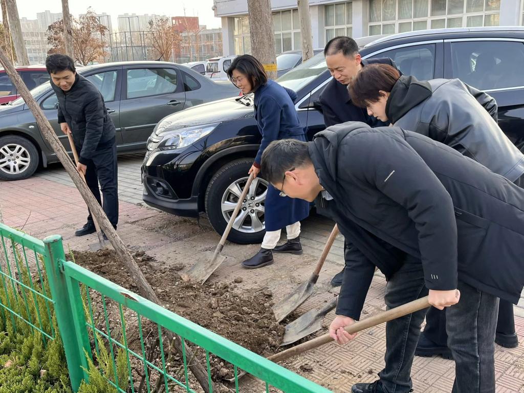 活动期间,学院通过进教室宣讲、校园广播、海报张贴等多种形式,广泛宣传植树节的环保意义。学院师生积极参与,共同探讨植树造林对于维护生态平衡、美化校园环境的重要作用;此外,农学院领导团还带领同学们热情洋溢地投入到植树活动当中,他们分工明确、齐心协力,每个人都忙得不亦乐乎,经过一下午的辛勤劳动,一棵棵小树苗傲然挺立,为校园增添了一抹新绿。活动现场,师生们热情高涨,脸上洋溢着劳动的快乐和满足,此次活动圆满结束。