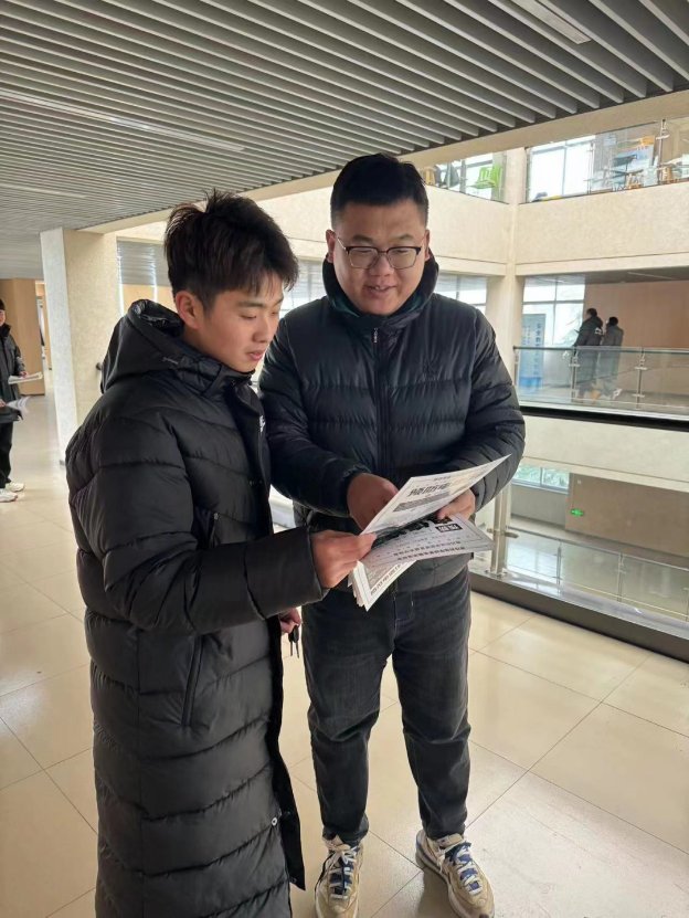 本次活动由葛树喆、刘晨、褚旭等几位老师与安全部成员面向全校范围内共同发放了关于“什么是‘电信诈骗’”,“十个凡是”防电信诈骗以及谨记“三步一及时”的宣传手册,大家以自己了解的案例为引子,向同学们宣传了常见的电信诈骗类型、犯罪的规律特点以及防范措施,提醒同学们要提高自己的警惕心,如果遇到电信诈骗应立即向老师求助并报警。一张张传单承载着老师的殷切嘱托,时刻提醒同学们应保护好个人财产安全,不轻易上当。