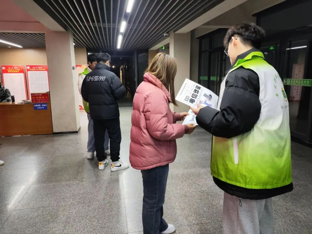 志愿者面向农学院全部师生发放了防诈骗宣传材料,并结合典型案例对宣传材料进行了讲解,以便同学们更加了解“什么是电信诈骗”,“如何识别并防范电信诈骗”等问题,积极引导同学们时刻树立起防范电信网络诈骗理念。