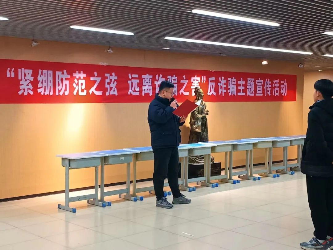 在活动过程中,为调动同学们的积极性,葛树喆老师向同学们介绍了此次活动的重要意义,并提醒大家在日常生活中要时刻怀有警惕之心,最后大家在横幅上郑重地签下自己的名字,横幅上密密麻麻的名字,不仅是签下一份承诺,一份责任,更能体现出同学们对于防范电信诈骗的信心。