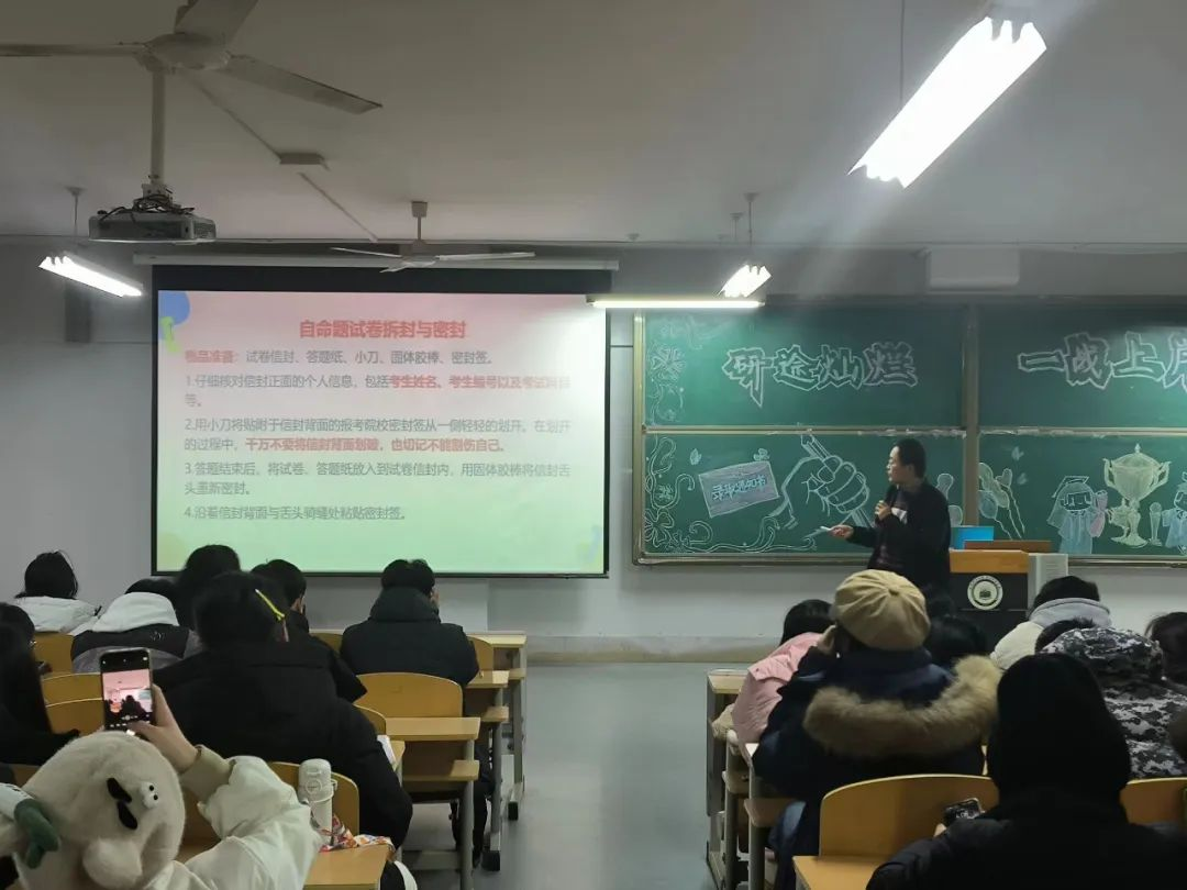 为鼓舞即将迈入考场的2024届考研学子,明确考研初试期间的注意事项,12月13日下午必赢网址bwi437召开2024年考研初试考前注意事项培训会,此次培训会由考研指导教师、党支部副书记李建永老师主讲,2024届全体考研学子参加。