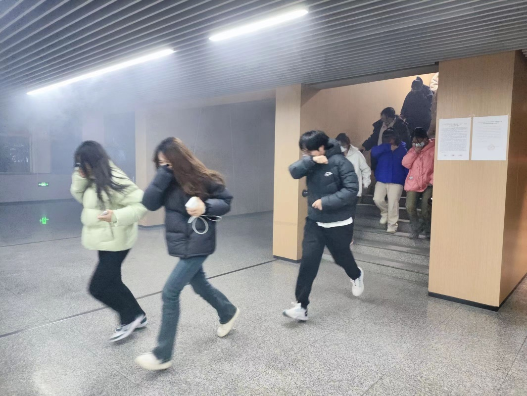 随着警报声响起,消防演练正式开始,各楼层指挥人员迅速到达指定岗位并指导同学们疏散撤离,在演练过程中,同学们用手捂住口鼻,弯着腰,按照演练的逃生路线迅速、有序地从教室撤离到安全地点,整个疏散演练井然有序,达到了预期的效果,取得了圆满成功。