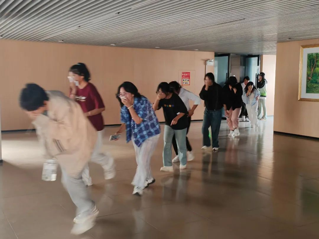 随着警报的响起,消防演习正式拉开帷幕。各楼层指挥人员迅速到达指定岗位,引导学生进行紧急疏散撤离。学生们用湿毛巾掩住口鼻,弯腰沿着预定的应急路径快速而有序地从教室撤出,移步至安全区域。整个撤离过程条理清晰、秩序井然,演练达到了预期效果,顺利完成。最后,李建永书记对此次活动进行了总结分析,讲解了火灾的危害及逃生的方法,同学们受益颇多。