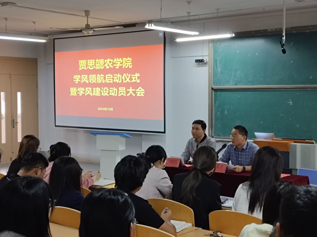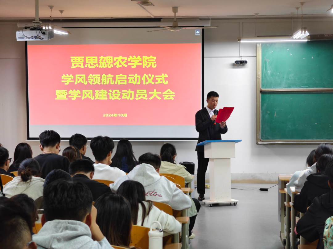 活动伊始,团总支书记刘建伟主持介绍参会人员。接着,由裴华丽主任向同学们详细介绍学风领航活动方案,表明活动的核心在于增强学院学风建设、营造良好的学术氛围,为学院学风建设贡献力量;随后,由学生代表对学风建设表述自己的看法,并承诺积极响应学院号召,以优秀学生为榜样,努力创新。活动最后,学院党支部副书记李建永在最后强调,创建优良学风对于营造浓厚学习氛围、促进学生成长成才具有重要意义。希望农学院全体师生都能以此次学风领航活动为契机,认真落实“学风建设”相关工作,严格规范自身行为。希望全体学生树立远大理想,明确学习目标,端正学习态度,积极参加专业实践,踔厉奋发,不断自我提升,在努力与奋进中绽放青春光彩!最后,全体师生上台进行签字仪式。