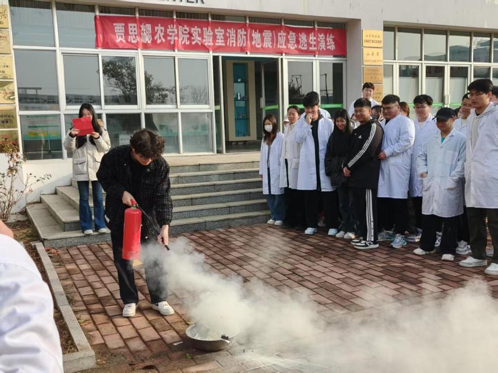 演练前,相关负责人向学生详细讲解地震逃生路线、火灾自救方法及防踩踏注意事项,明确安全集结点位置。警报响起后,参演师生迅速护住头部、低姿贴墙,沿标识路线有序撤离。疏散结束后,现场演示灭火器“一提、二拔、三握、四对、五压”操作规范,强化应急技能。李婷婷老师总结指出,演练过程组织严密、撤离高效,同时强调需将安全规范融入日常实验操作,切实提升实验室风险防控能力。
