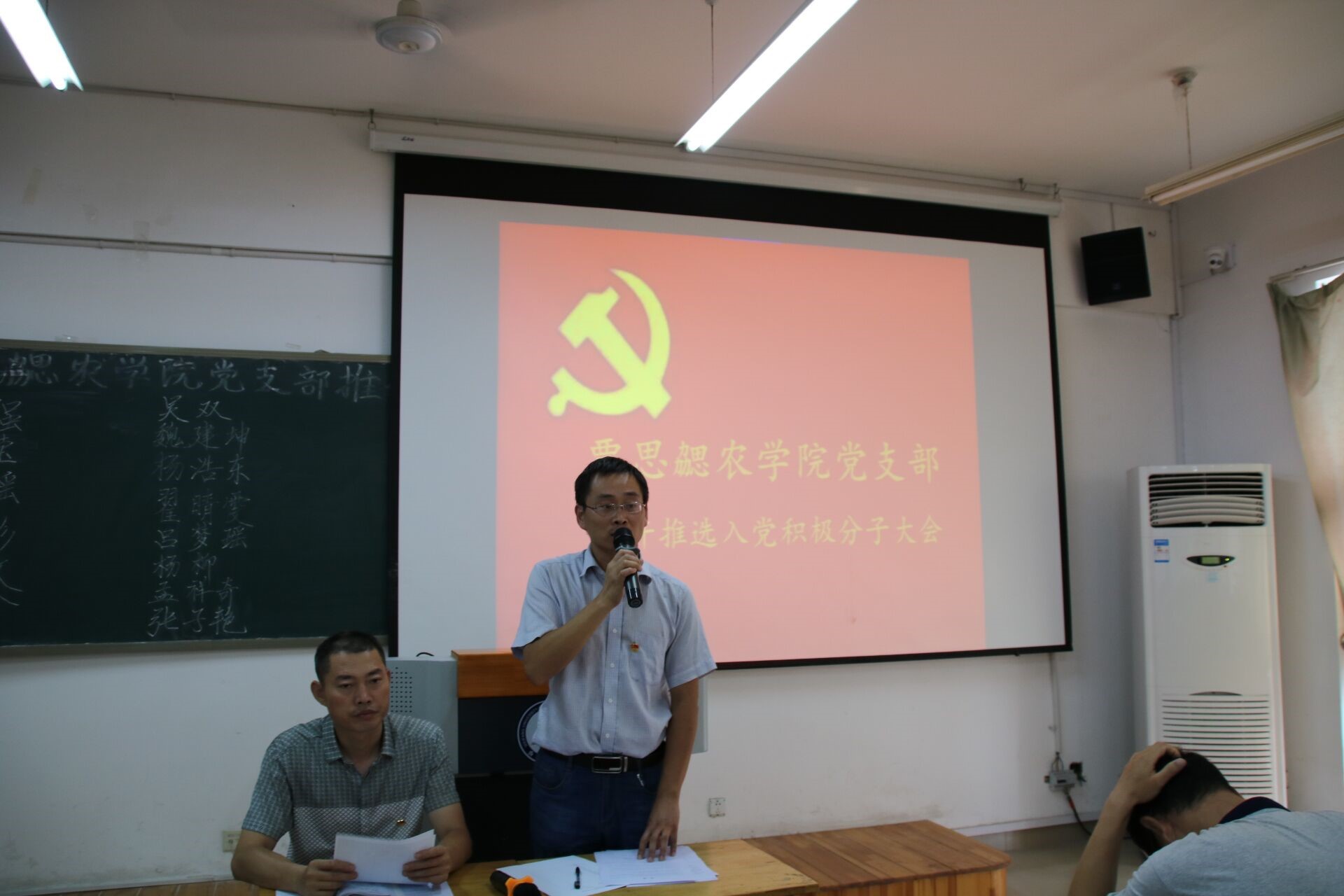 李培之书记详细介绍了本次推选预备党员的程序宣读了相关推选办法,严肃强调了选举过程中的公平、公正性。从学生中选出一些表现优异,作风正派,思想积极上进,志愿加入中国共产党的4名同学作为预报备员候选人,并分别向与会党员陈述了自己对党的认识、入党动机以及工作、学习中取得的成绩,从而加深了各位党员及与会群众对他们的印象。