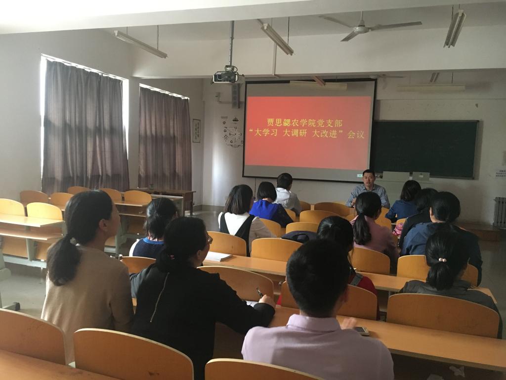 2018年4月2日下午,我院党支部在208教室传达学习全省教育系统开展的“大学习、大调研、大改进”工作会议精神。会议由李培之书记主持,农学院全体教职工参加。