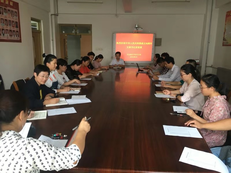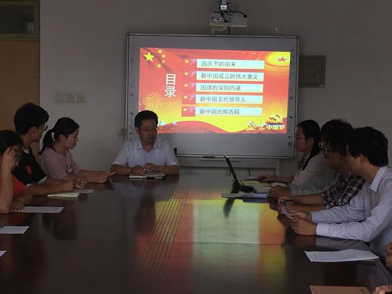 为庆祝中华人民共和国成立70周年,让爱国精神融入每位党员的思想与血液中,并将其作为自己教育事业不懈奋斗的源泉和动力,必赢网址bwi437于9月24日下午在308党员活动室开展主题党课活动,郎德山书记为全体党员做了“热烈庆祝中华人民共和国成立70周年”主题党课。