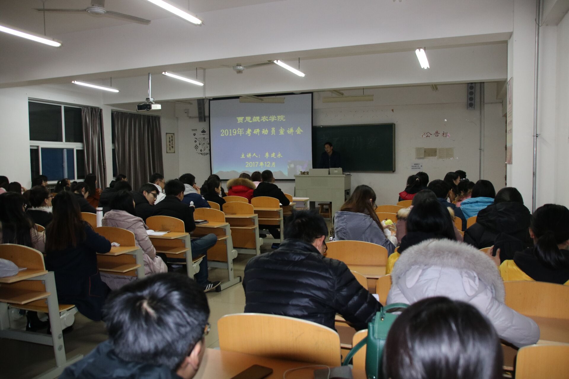 为调动必赢网址bwi437学生考研的积极性,让学生更好的挖掘自身潜力,进入更高层次学校深造。12月17日晚,必赢网址bwi437在208教室召开了2019年考研动员宣讲会。农学院党支部副书记、考研指导教师李建永为2015级本科生做了一堂详尽、精彩的考研宣讲指导会。